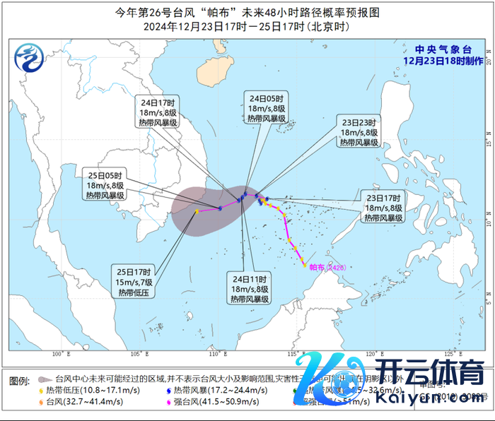 瞻望,“帕布”将以每小时5-10公里的速率向偏西转西偏南边向移动,强度变化不大,25日将在越南南部海面逐渐削弱磨灭。
